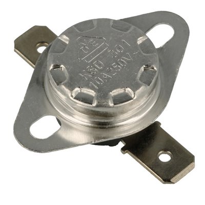 BIMET301H-105C10ANC - Termostat bimetaliczny NC (zamknięty) 105°C; 10A; 250V AC; metalowy, śr. 16x12mm z uchwytem; konektory 6,3mm poziome